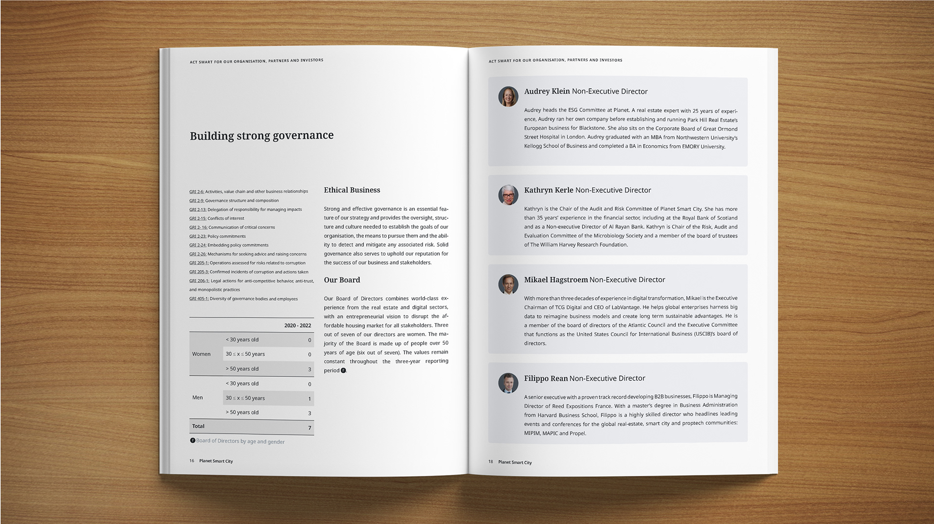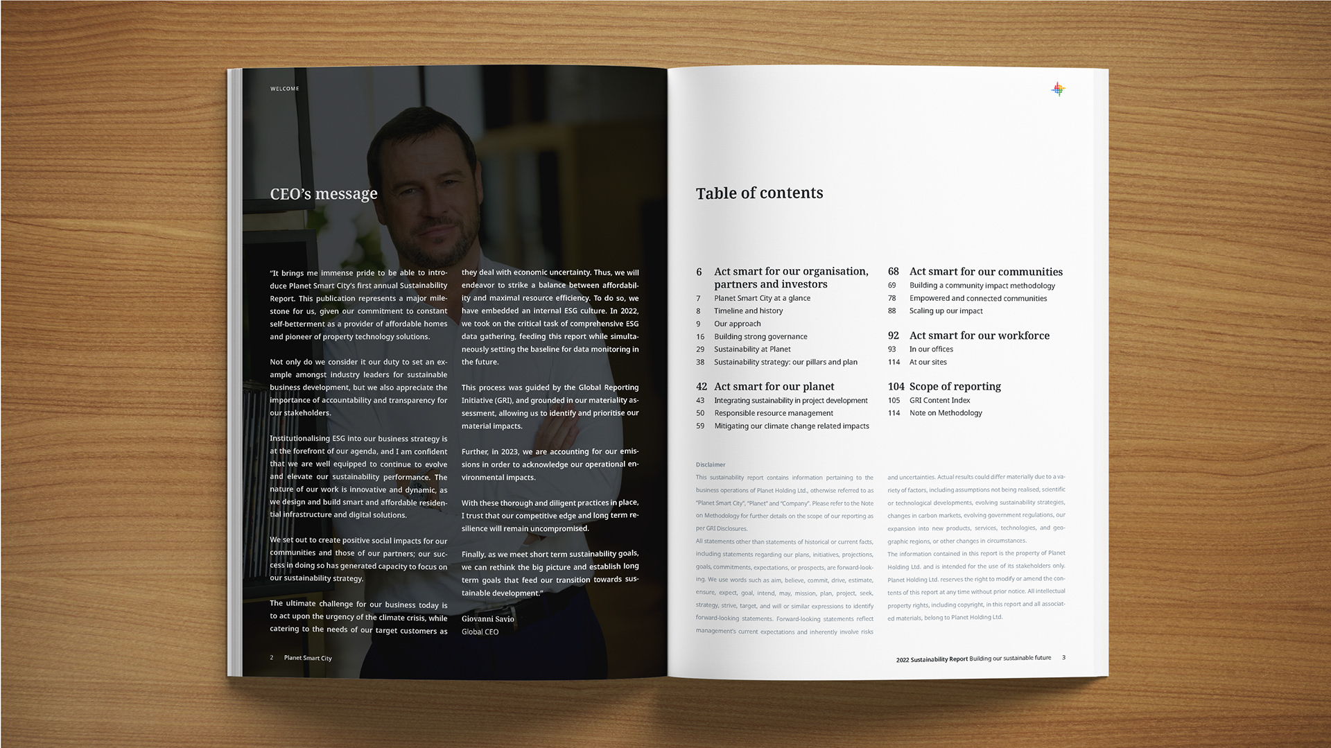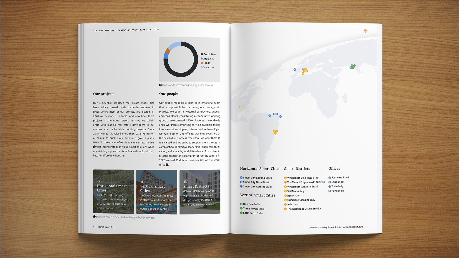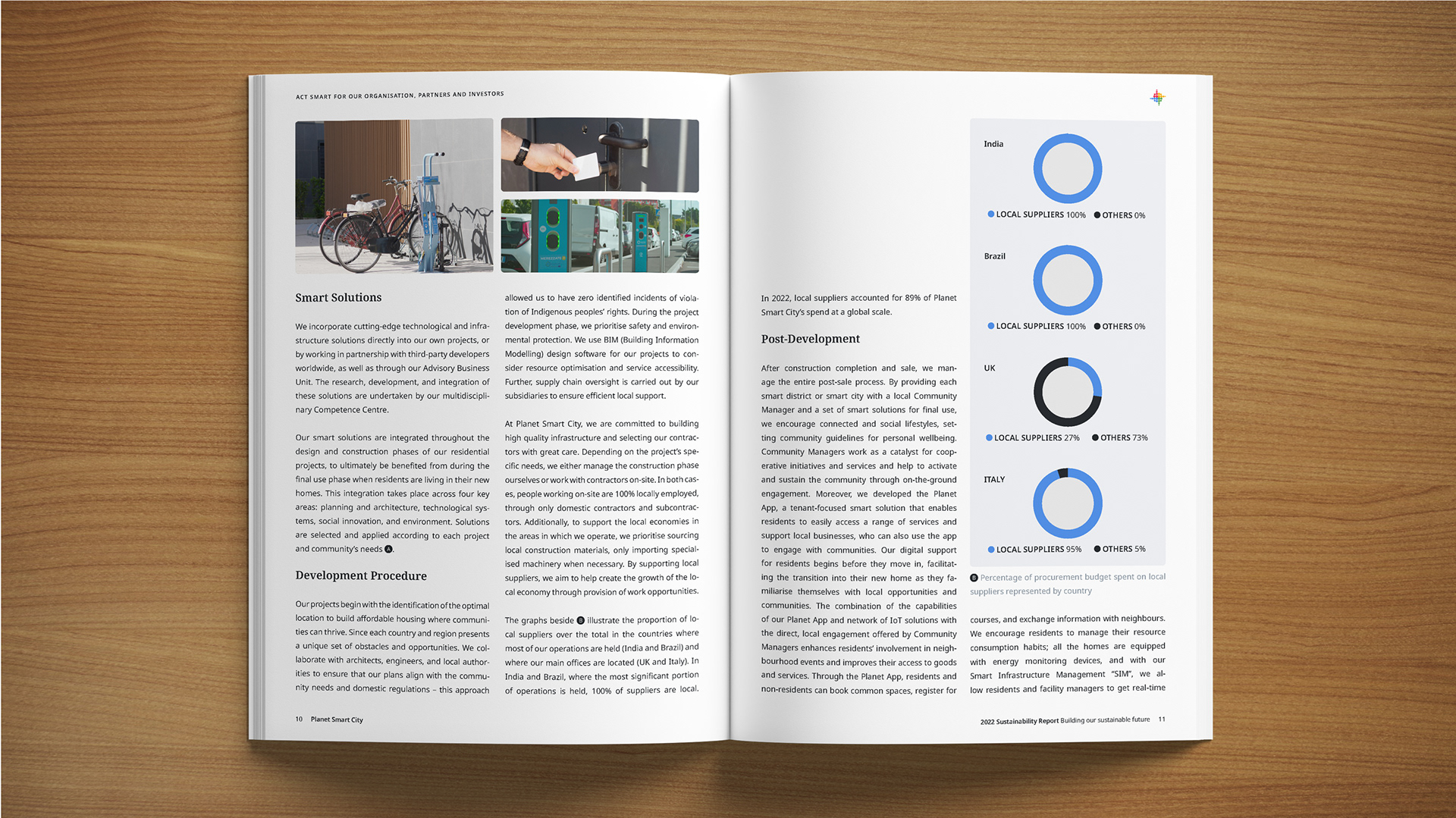 As part of my role at Planet Smart City, I was responsible for the full design of the company’s annual Sustainability Report, developed in close collaboration with the internal Sustainability Team and key stakeholders, as well as a copywriter.